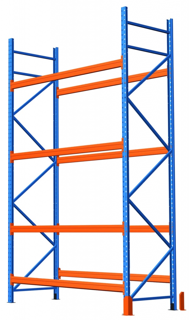 Секция основная стеллажа палетного. Состоит из 2 рам и 6 балок. Общая длина секции 2900 мм. Три уровня на балках и один уровень на полу. Общее количество палетомест - 12 шт размером 1200х800 мм. Используется первой в линейке.
