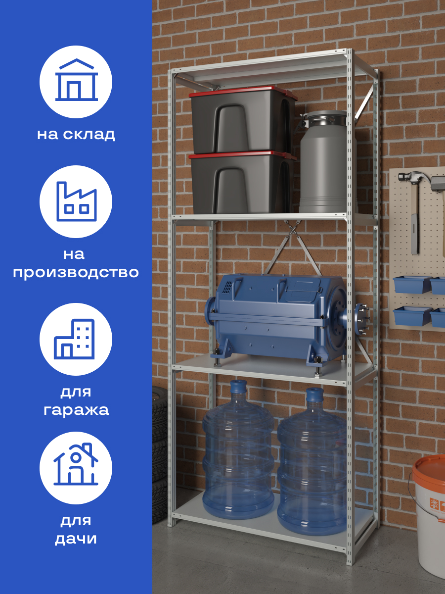 Стеллаж на зацепах МПК (2000х1200х300)/4, нагр.100кг (основная секция)
