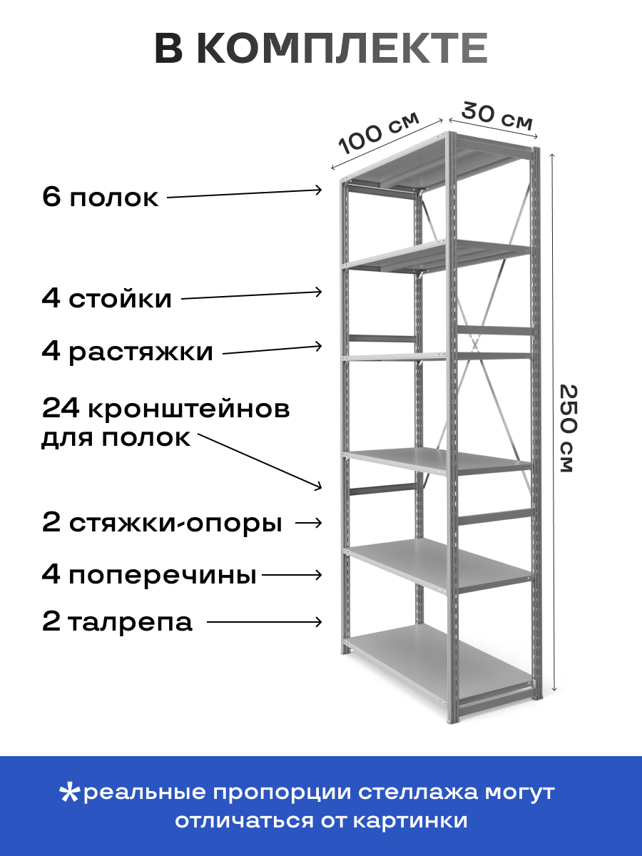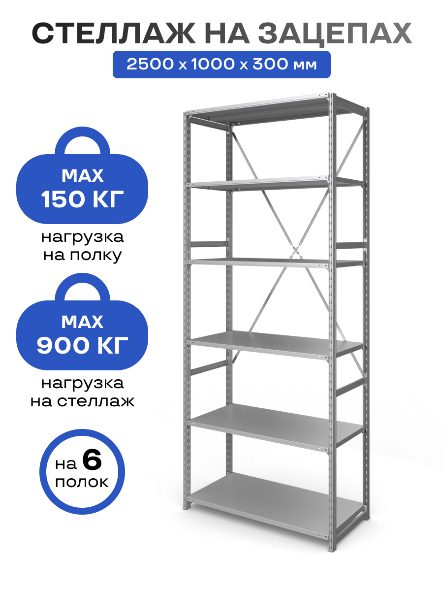 Стеллаж на зацепах МПК (2500х1000х300)/6, нагр.150кг (основная секция)