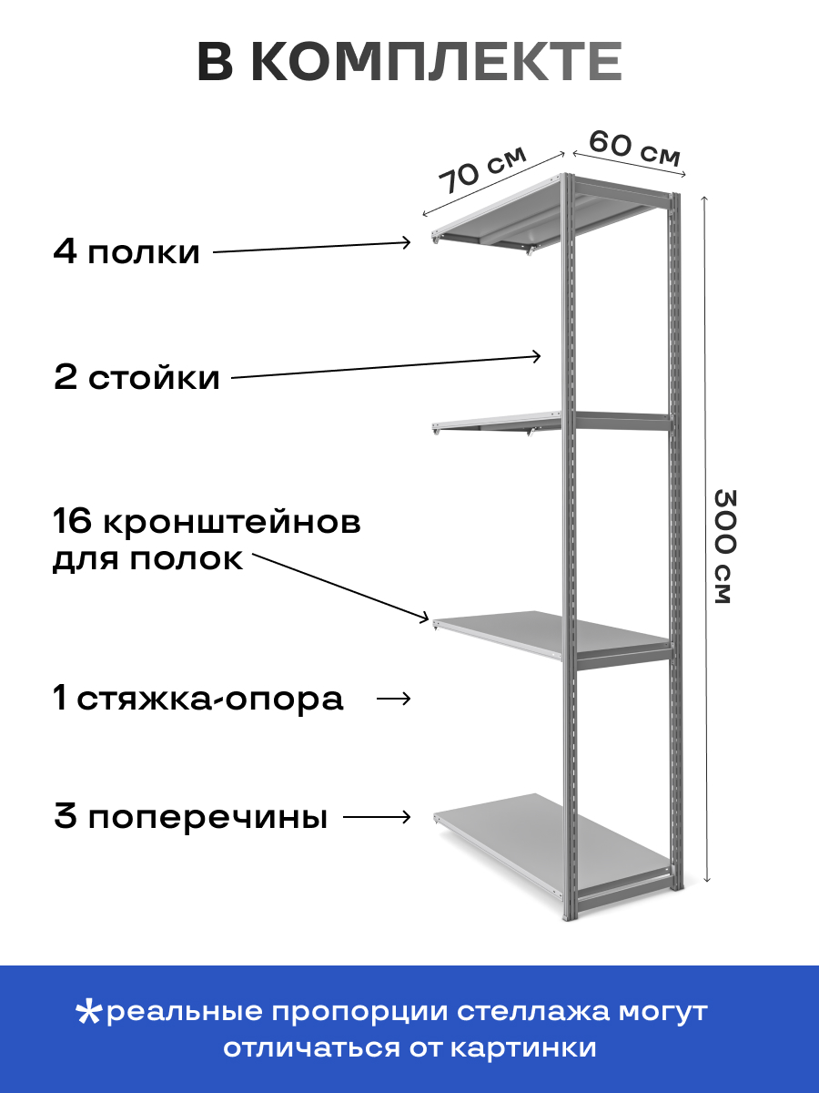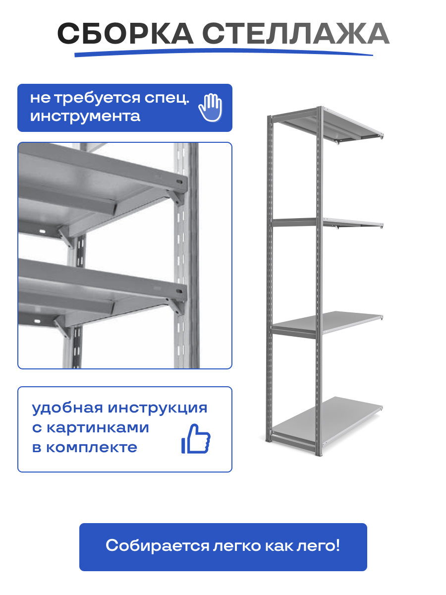Стеллаж на зацепах МПК (3000х700х600)/4, нагр.300кг (дополнительная секция без растяжки)