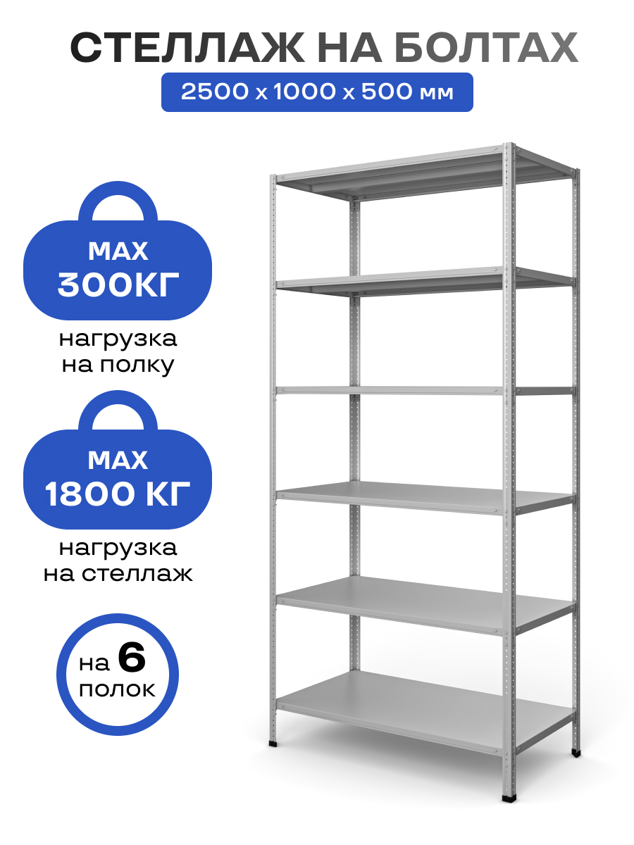 Стеллаж на болтах МПК (2500х1000х500)/6, нагр.300кг