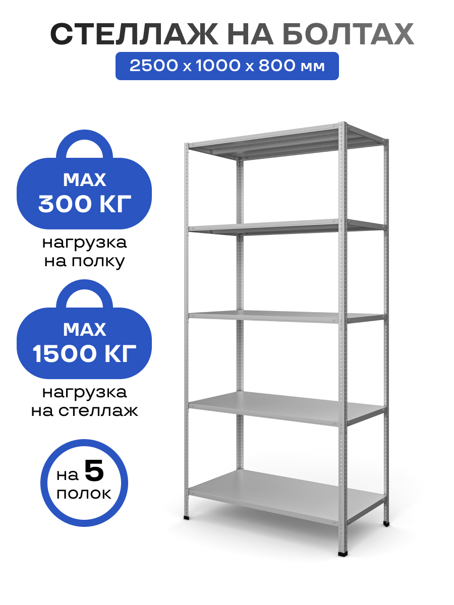Стеллаж на болтах МПК (2500х1000х800)/5, нагр.300кг