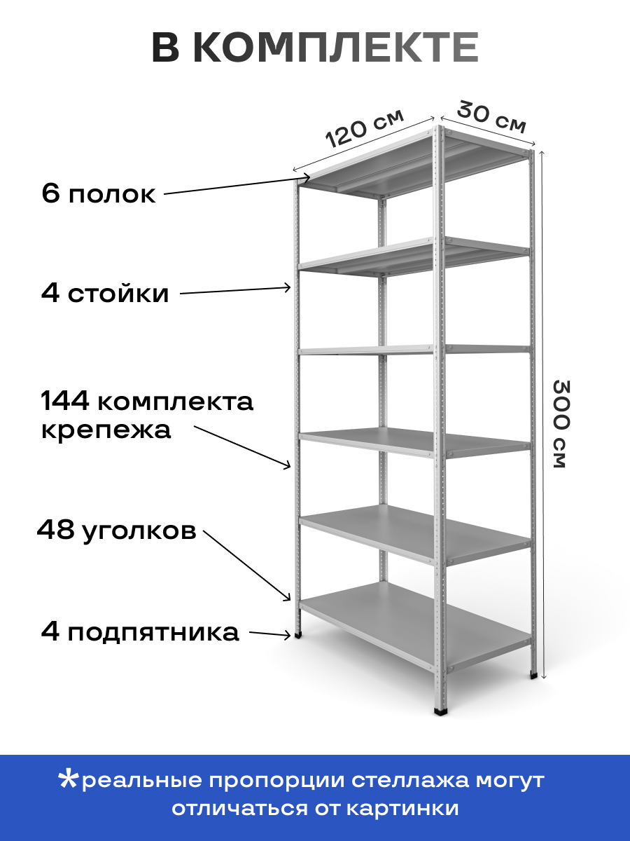 Стеллаж на болтах МПК (3000х1200х300)/6, нагр.300кг