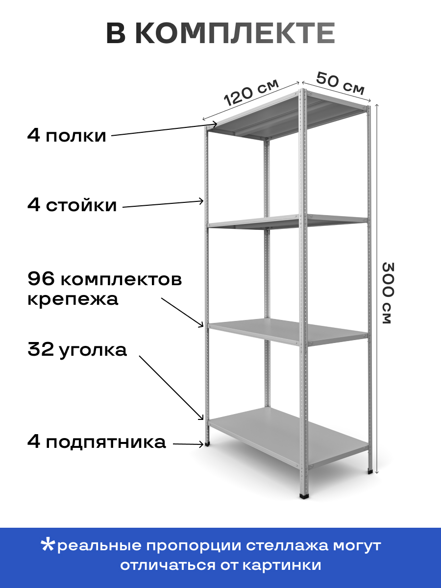 Стеллаж на болтах МПК (3000х1200х500)/4, нагр.200кг