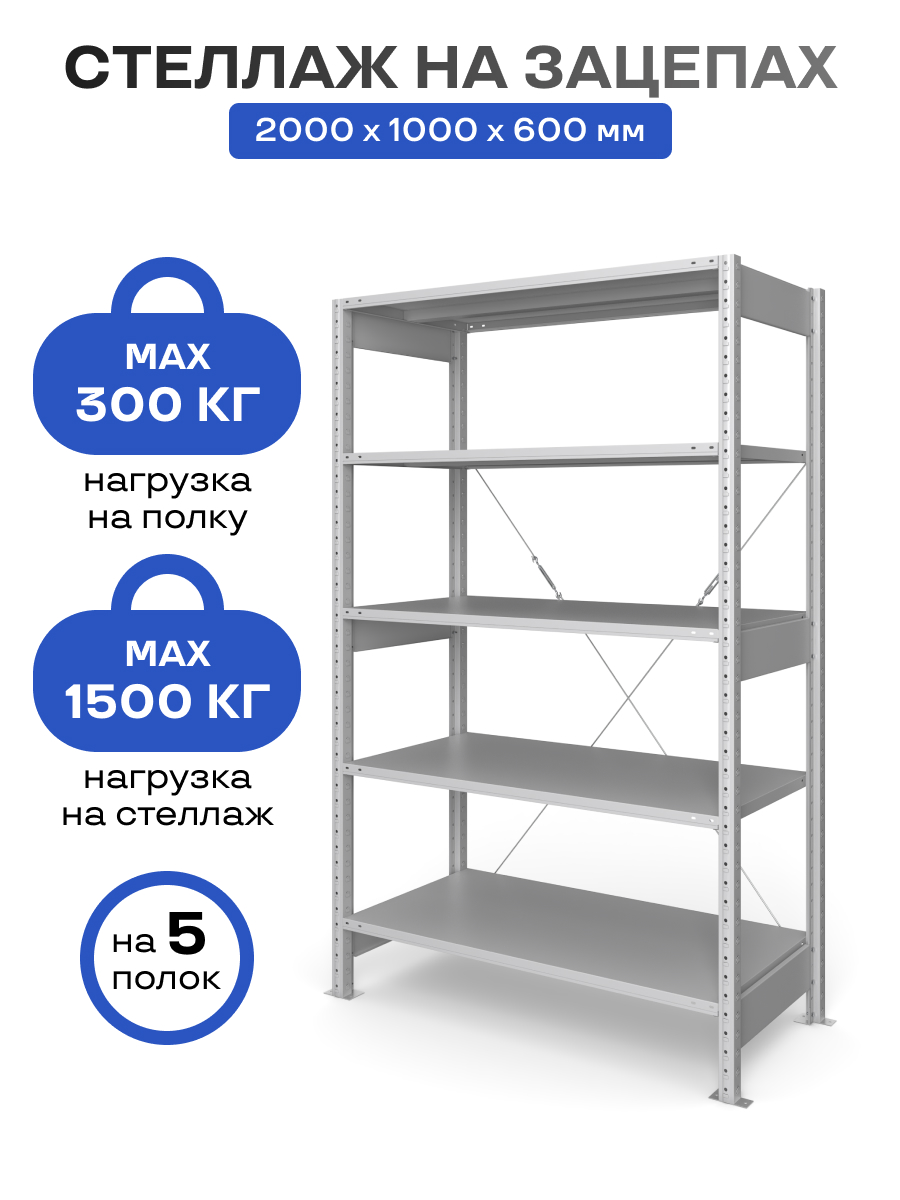 Стеллаж САМус (2000х1000х600)/5, нагр.300кг (основная секция с растяжкой)