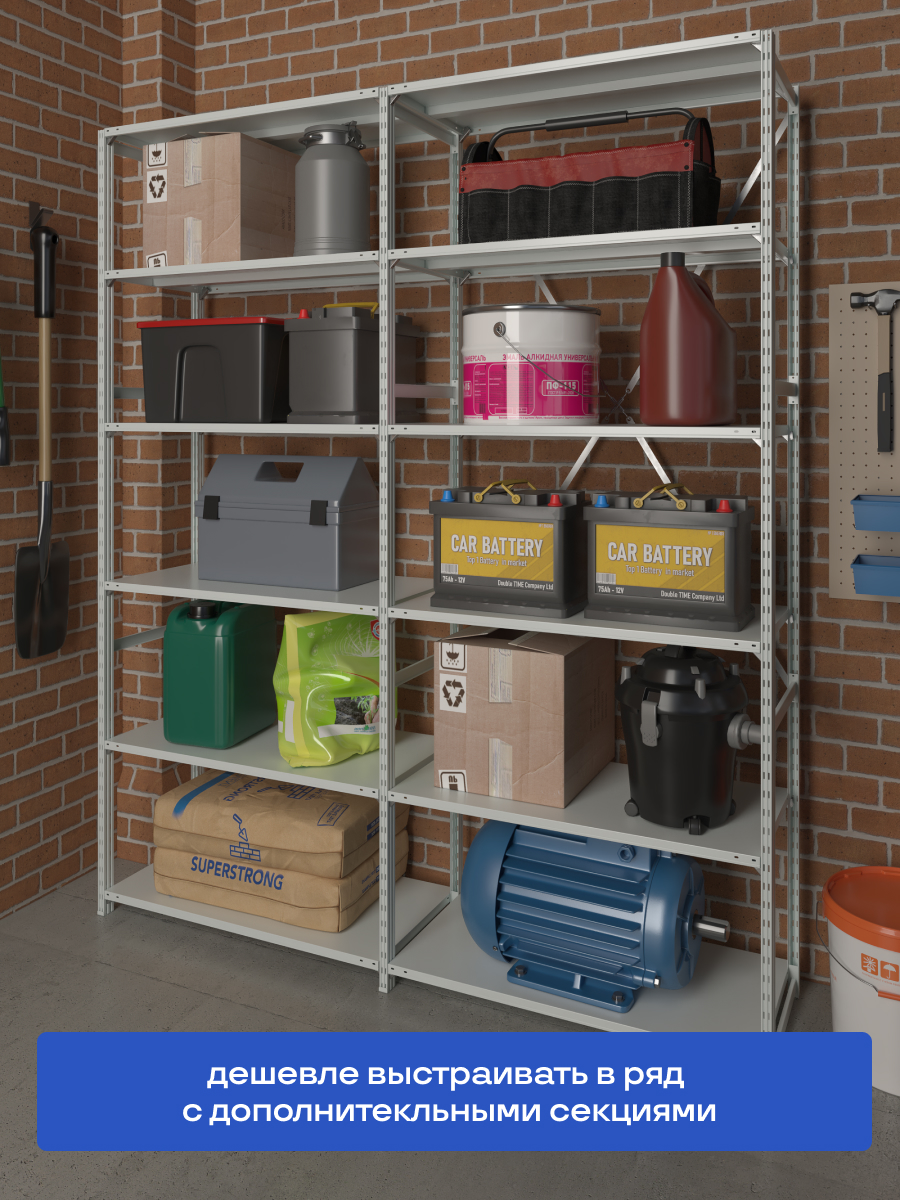 - Стеллаж на зацепах МПК (2500х1200х600)/6, нагр.150кг (дополнительная секция без растяжки) / Стеллаж на зацепах МПК (2500х1200х600)/6, нагр.150кг (дополнительная секция с растяжкой) / Верстак МПК 6/1,6 860х1600х685 (2-тумбовый с шуфлядами)