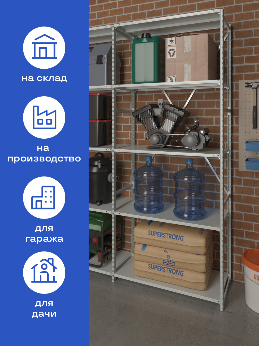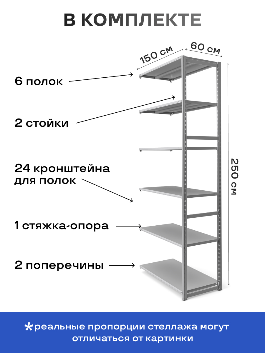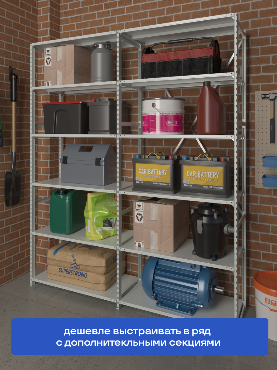 Стеллаж на зацепах МПК (2500х1500х600)/6, нагр.300кг (дополнительная секция без растяжки)