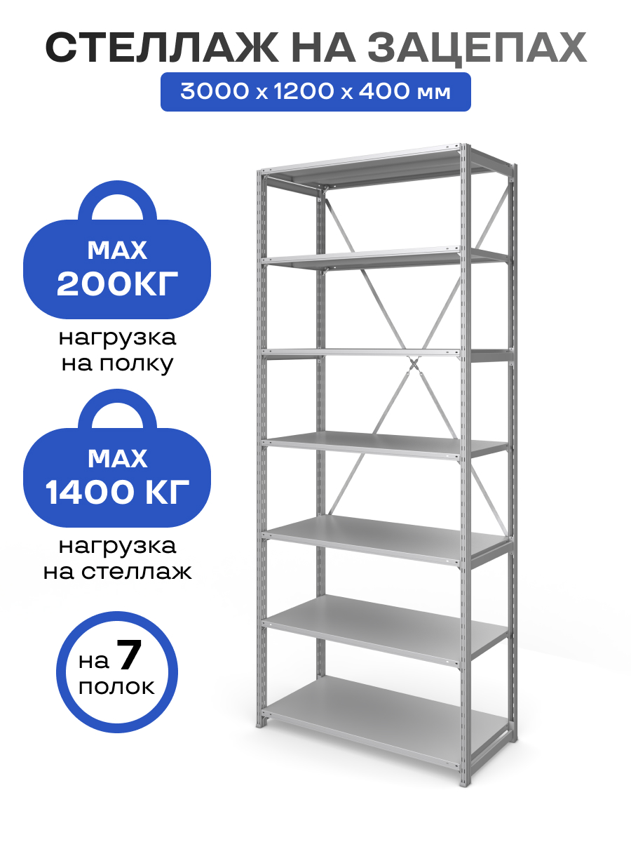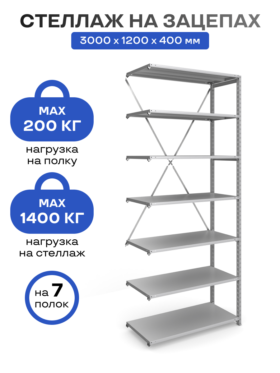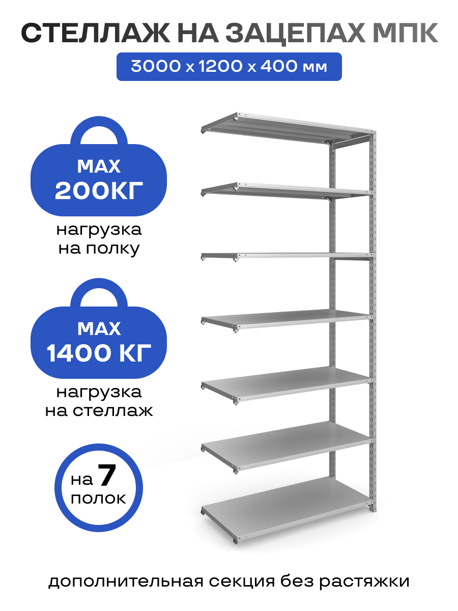 Стеллаж на зацепах МПК (3000х1200х400)/7, нагр.200кг (основная секция)
