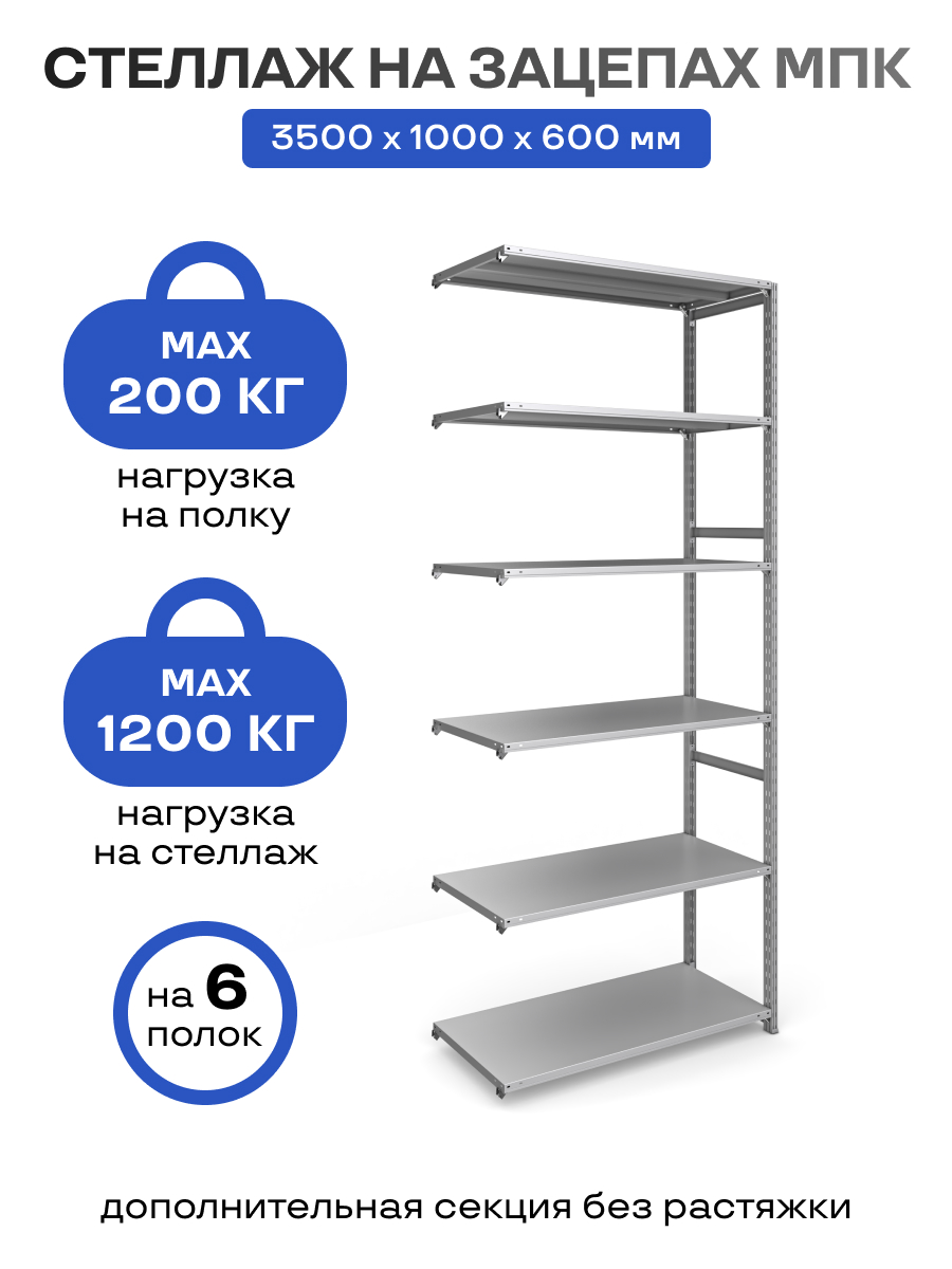 Стеллаж на зацепах МПК (3500х1000х600)/6, нагр.200кг (основная секция)